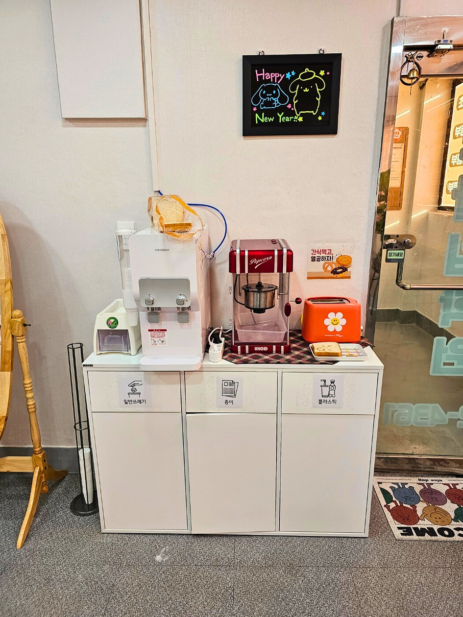 간식과 정수기가 구비되어있어 아이들이 편하게 이용할 수 있습니다.