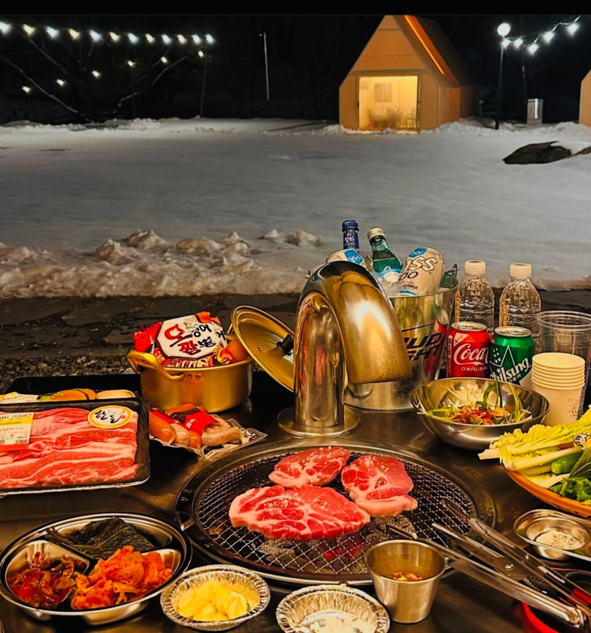 친구들과 예약을 하고 난 후 눈이 너무 많이 와서 취소를 할까 고민했던걸 후회했어요. 글램핑 안에 난방시설이 잘되어 있는데다 눈이와서 오히려 포근한 느낌이었어요. 국내산 한돈만을 취급하셔서인지 고기맛 최고고 곁들임 야채랑 반찬들은 싱싱하고 맛있었어요. 사장님도 멋지고 친절하시더라구요.