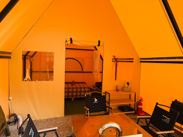 넓고 쾌적한 텐트에서 편안하게 휴식하세요.
